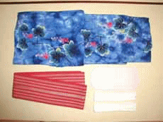 (上)浴衣・(左下)半幅帯 (右下) 帯板・腰紐2本 その他 下着・草履または下駄 |